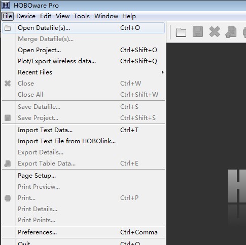 打開HOBO軟件,打開第一個(gè)文件,在文件菜單欄上找到(Open Datafile)之后選中要打開的第一個(gè)文件,按Plot來展示