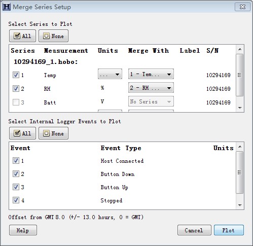 里面可以設(shè)置要顯示的數(shù)據(jù)項(xiàng),按Plot展示數(shù)據(jù),(如果兩個(gè)數(shù)據(jù)文件的記錄時(shí)間上沒有重疊)合并成功!