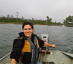 馬德琳楔形,隨著林業(yè)和野生動(dòng)物科學(xué)奧本大學(xué)學(xué)院的研究人員,談到有關(guān)涉及使用數(shù)據(jù)記錄儀的濕地她的研究項(xiàng)目,以確定附近的鹽沼魚的影響城鎮(zhèn)土地使用是否。