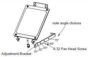 使用剩余的8-32盤頭螺釘將調(diào)節(jié)支架安裝到右支架上。 注意顯示了五個(gè)角度選擇(15°,30°,45°,60°和75°)。為太陽能電池板正在部署的位置選擇適當(dāng)?shù)慕嵌,并將螺釘安裝在正確的孔中。