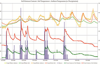 示出變化的增加的延遲時(shí)間。當(dāng)2月17和2月18日(圖6)的土壤溫度下降到低于環(huán)境溫度,但會(huì)繼續(xù)