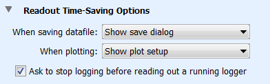 繪圖時(shí)。此偏好控制讀取記錄器時(shí)的默認(rèn)繪圖行為。選擇“顯示譜圖設(shè)置”,在讀出并保存文件后顯示譜圖設(shè)置窗口。如果要繞過繪圖設(shè)置窗口,請(qǐng)選擇“自動(dòng)繪圖”,而是在讀出并保存文件后自動(dòng)繪制數(shù)據(jù)。如果您將使用通過“繪圖設(shè)置”窗口訪問的數(shù)據(jù)助理,則不建議使用此選項(xiàng)。如果您不想繪制數(shù)據(jù),請(qǐng)選擇“不繪圖”。這是有用的,如果你正在讀幾個(gè)記錄器,喜歡看看后面的情節(jié)。您可以隨時(shí)打開保存的數(shù)據(jù)文件并繪圖。