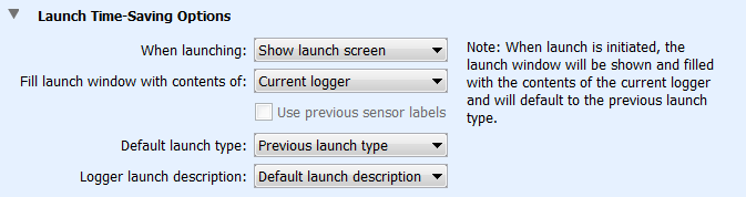 啟動(dòng)時(shí)。從設(shè)備菜單中選擇啟動(dòng)或單擊工具欄上的啟動(dòng)圖標(biāo)時(shí),選擇“顯示啟動(dòng)屏幕”以顯示啟動(dòng)記錄器窗口,或選擇“自動(dòng)啟動(dòng)”以繞過此窗口并使用默認(rèn)設(shè)置啟動(dòng)記錄器。如果要在不更改任何設(shè)置的情況下快速啟動(dòng)多個(gè)記錄器,選擇“自動(dòng)啟動(dòng)”特別有用。默認(rèn)設(shè)置由“首選項(xiàng)的內(nèi)容填充啟動(dòng)窗口”確定。