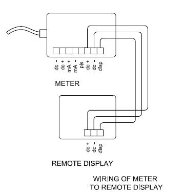 3、下圖顯示了儀表和求和遠(yuǎn)程顯示器之間的接線,如果互連電纜為22號或更大并且不超過60英尺,則可以在儀表或顯示器處連接電源。否則,它必須在儀表。