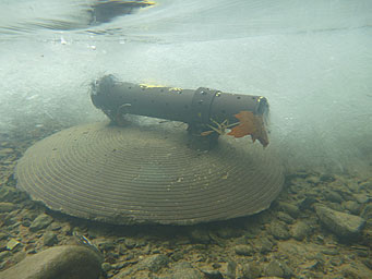 作為其“監(jiān)測天然氣發(fā)展”計(jì)劃的一部分,在特拉華州和Lackawaxen河流和在賓夕法尼亞州兩個(gè)小溪哪里鉆很可能發(fā)生的DRBC的監(jiān)控,建模與評估處已經(jīng)部署HOBO®U24電導(dǎo)率和溫度記錄儀第一。低調(diào)的混凝土基地,構(gòu)建由混凝土澆筑成一個(gè)飛碟雪橇記錄儀的安裝。兩個(gè)短鋁管從混凝土基座突出部分,和具有孔的橫PVC管位于固定到基座容納傳感器,它被固定用拉鏈的關(guān)系。在PVC管內(nèi)的傳感器的位置最小化氣泡以及沉積物可能在傳感器否則積聚。