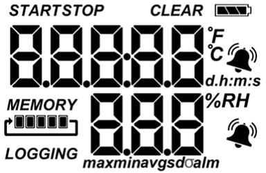 相對(duì)濕度傳感器:此傳感器位于記錄儀外殼的通風(fēng)面板后面,位于LCD屏幕和溫度傳感器的右側(cè)。